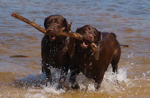 Ein begleiteter Trainingsspaziergang mit zwei Mensch-Hund-Teams.